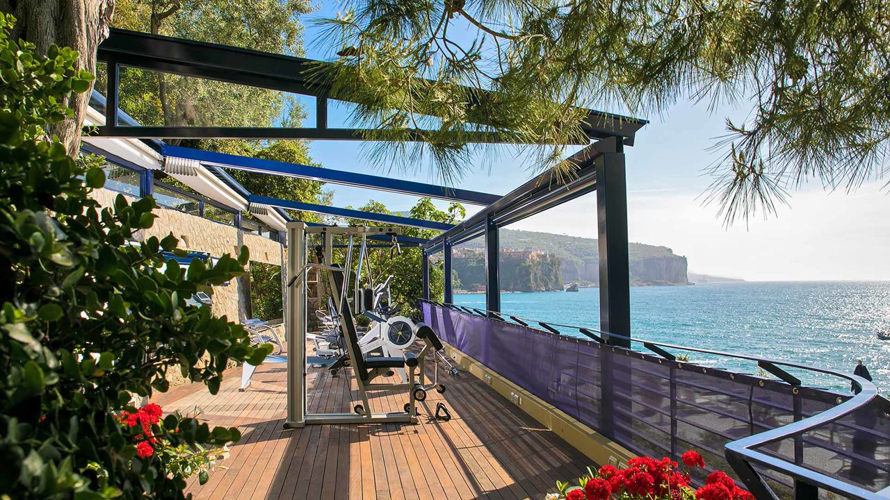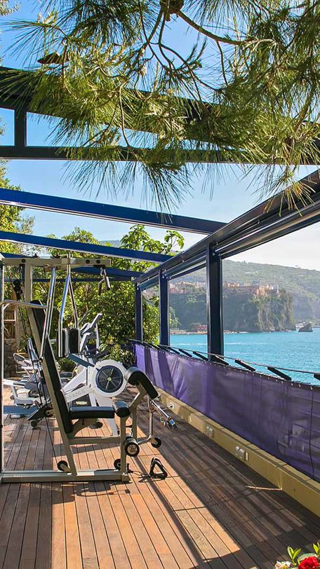 A terrace overlooking the sea, modern equipment: all that you need to exercise to the rhythm of the waves.